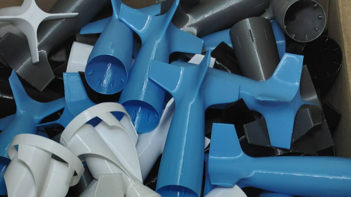 Сразу четыре принтера непрерывно печатают сбросники – переходники между беспилотником и грузом, который сбрасывается с воздуха.