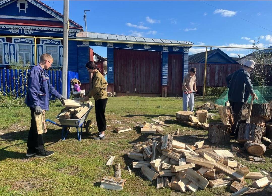 Волонтеры пришли на помощь матери бойца, помогли с колкой и укладкой дров — работы, особенно ценные для тех, чьи сыновья сейчас находятся на передовой, защищая Родину.