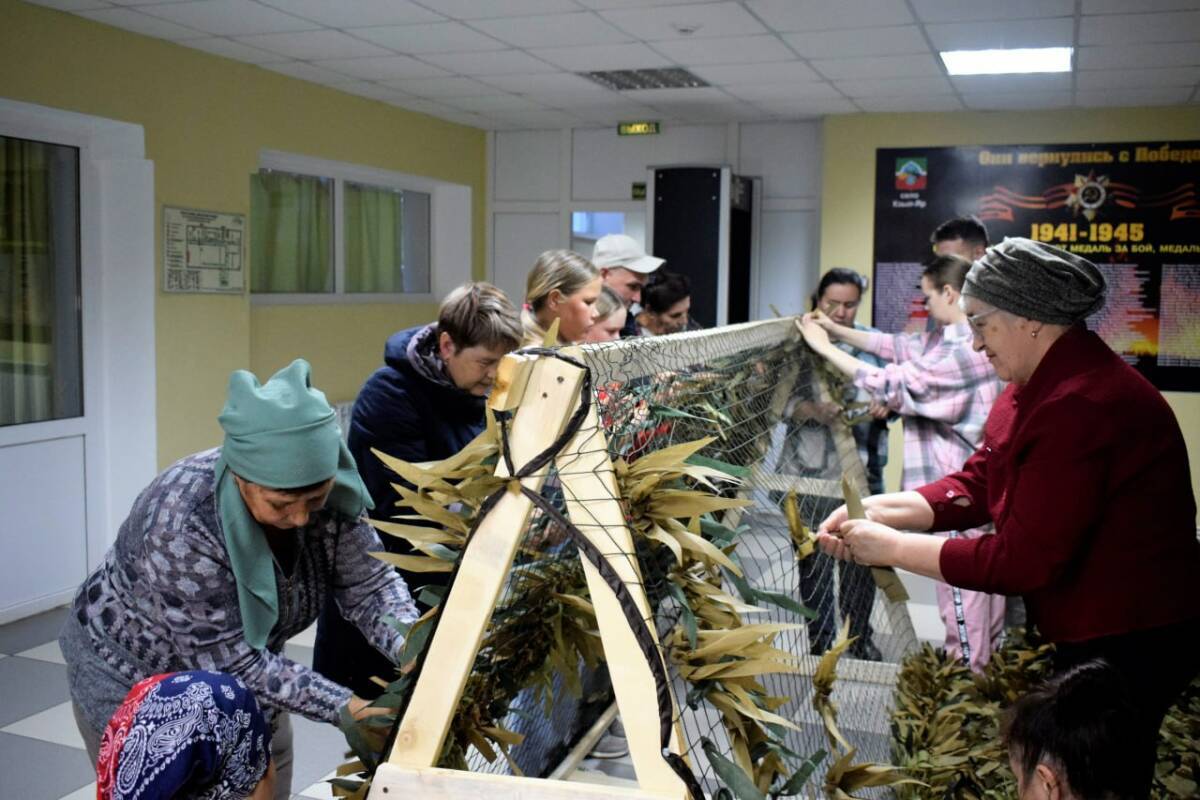 Жители охотно встают к стойке. Вместе работают дети, молодежь и старшее поколение. «Бойцам очень необходима наша поддержка, им нужен стимул, они должны знать, что мы здесь им помогаем. До этого в нашей деревне маскировочные сети не плели, такое впервые, и я как узнала – сразу пришла», – поделилась жительница Кзыл-Яра Нина Иксанова.